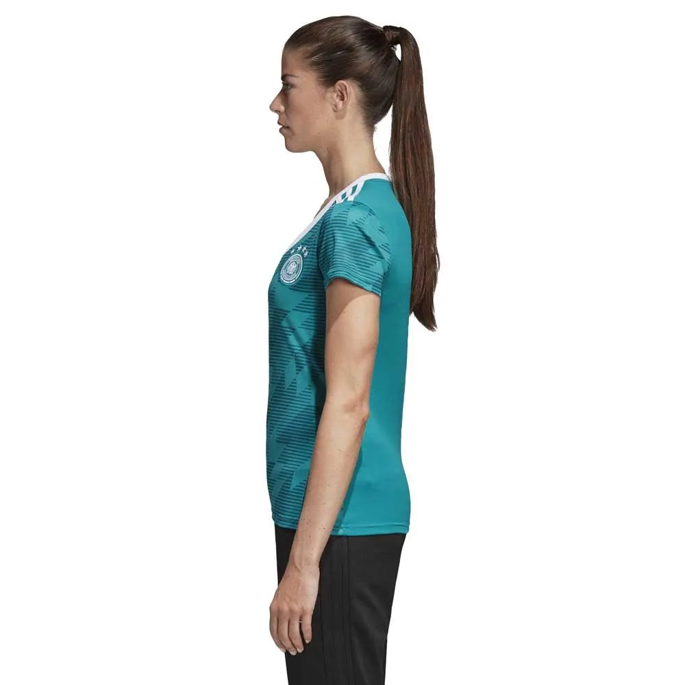 When West Germanys players held their nerve to overcome England on penalties after an epic semi-final encounter in 1990, their green away kit became an overnight classic.Inspired by the dynamic design worn on that famous night in Turin, this womens football jersey is a replica of the away shirt Germanys current stars wear. Made with sweat-wicking fabric, it has a slightly looser cut than the authentic version and displays a woven team badge.adidas is dedicated to creating products in ways that minimise their environmental impact. This jersey is made with recycled polyester to save resources and decrease emissions.