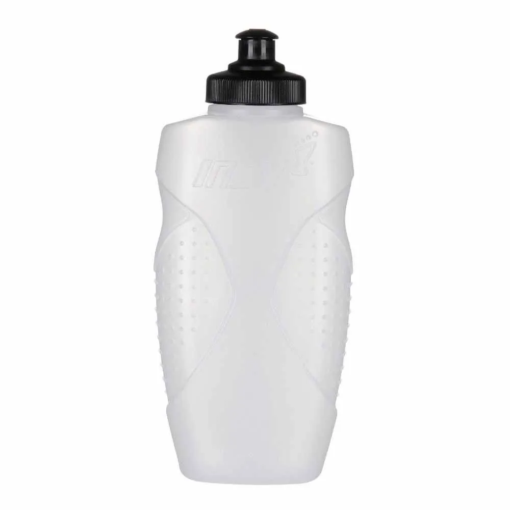 A uniquely designed flat 500ml bottle which hugs the body to reduce unwanted movement.
