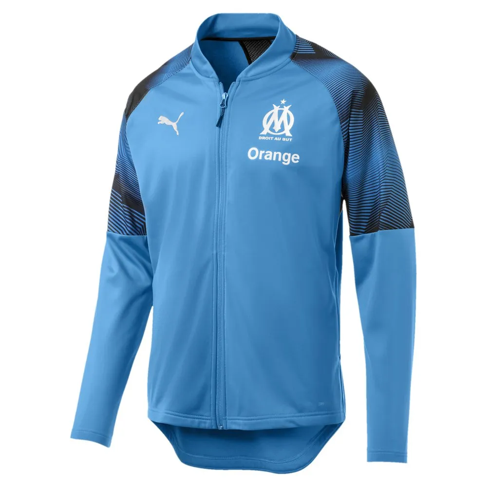 Official Football Equipment Puma Olympique Marseille Logo Sponsor 18/19. With this official warm-up jacket, you can prepare yourself like the professionals of Olympique de Marseille for every match. This sporty tracksuit jacket with dryCELL technology and moisture wicking and ventilation elements is perfect for the training ground and the streets. Features:- DryCELL: PUMA brand for moisture wicking properties and dry comfort- Slim fit- Continuous zip closure- Front pockets integrated into side seam- Ribbed collar- Sleeve elements with allover sublimation print- Extended back hem for protection with every move- Neck tape- Mesh element in back for improved breathability- Official OM emblem and logo on left chest- PUMA Cat logo on right chestSpecifications:MATERIAL INFORMATION:- Main Material 1: 100% polyester , knit, 220.00 g/m, finish: bio-based wicking finish Main Material 2: 100% polyester , flat back mesh, 145.00 g/m, finish: bio-based wicking finishProduct Care:- Wash and iron in reverse- Wash with similar colours- Close all zippers- Use colour detergent